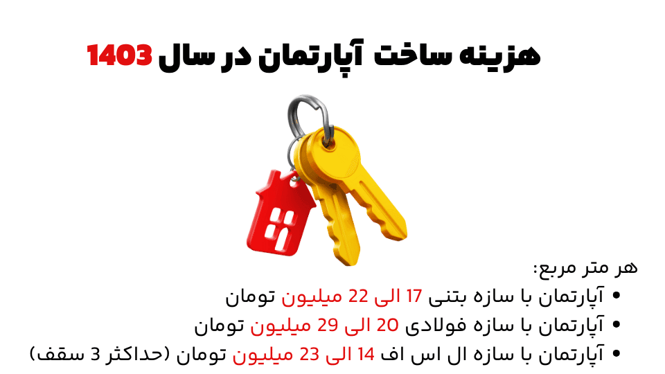 حداقل هزینه‌های ساخت آپارتمان از جدول زیر: