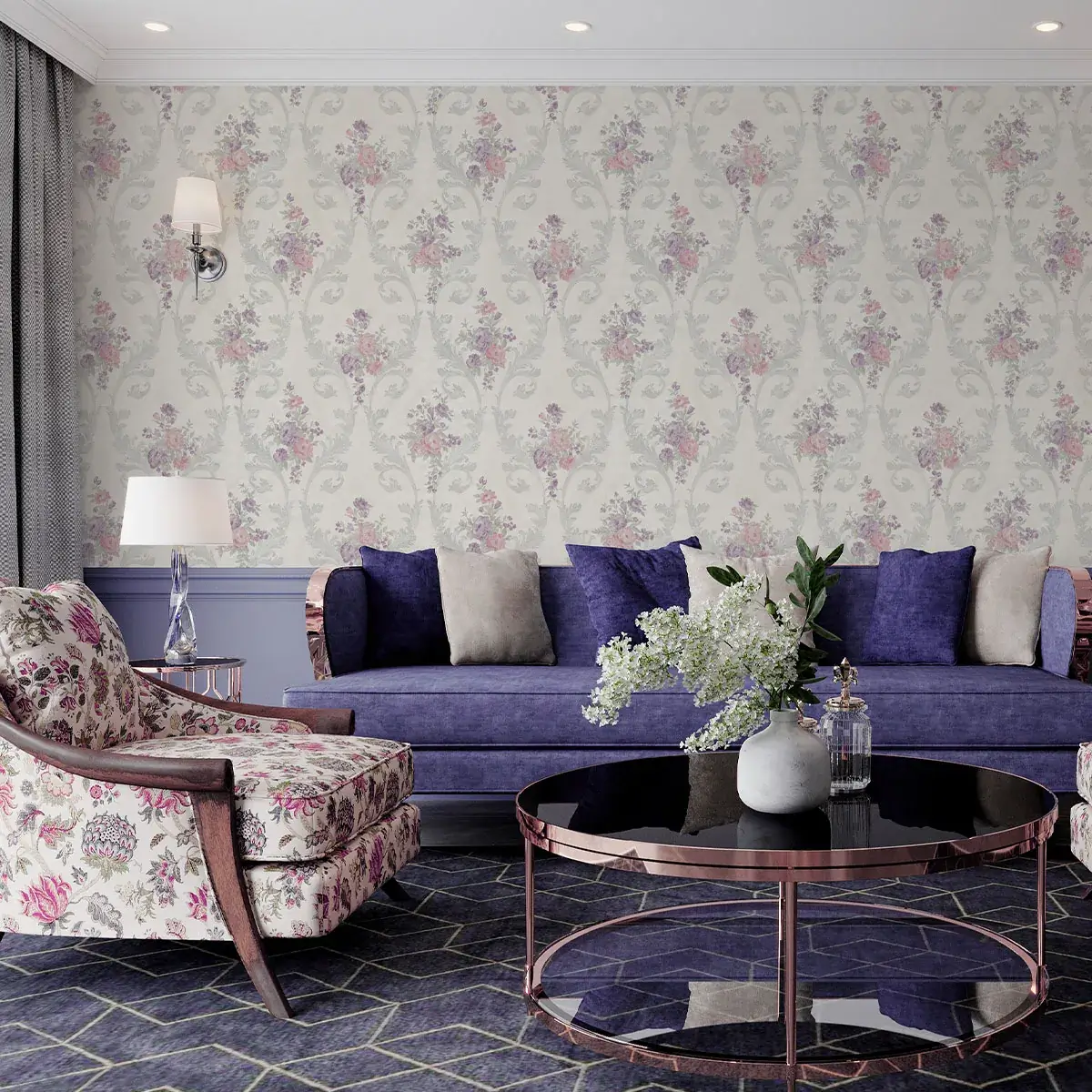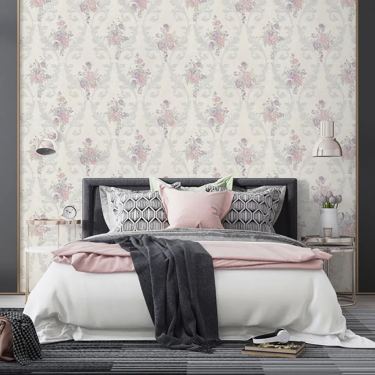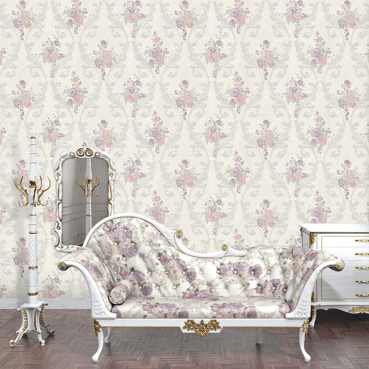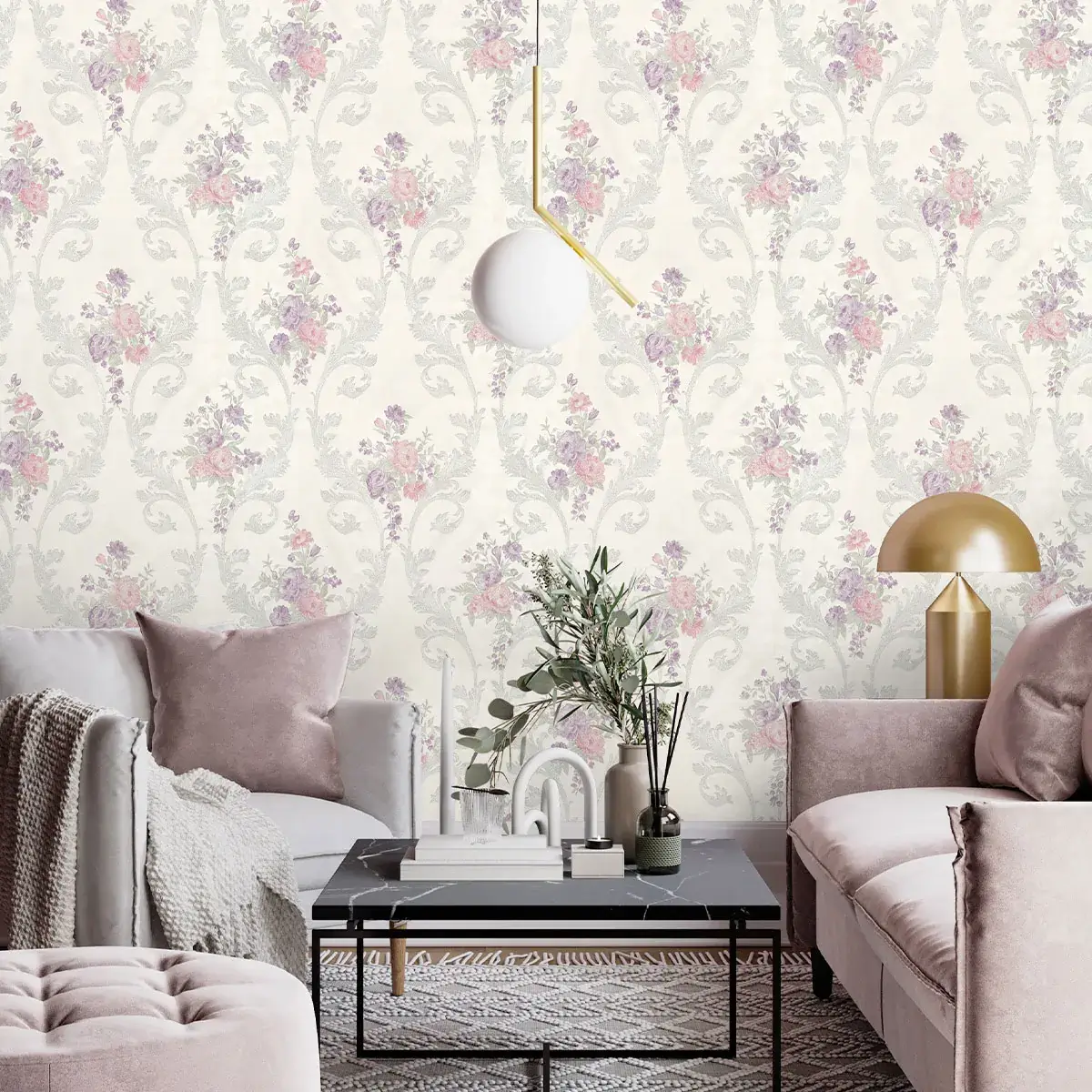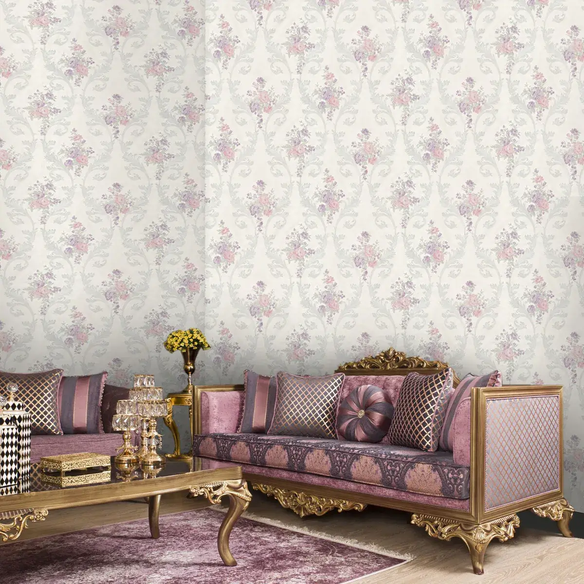 نوع طرح : کاغذ دیواری داماسک / کاغذ دیواری گل‌دار