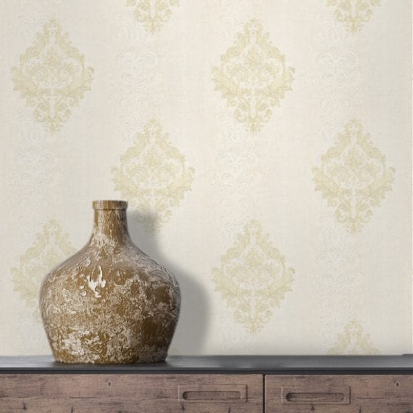 خانه کاغذ دیواری کاغذ دیواری رنگی کاغذ دیواری کرم کاغذ دیواری هیدروژن طرح داماسک الون کد ۵۰۴۶