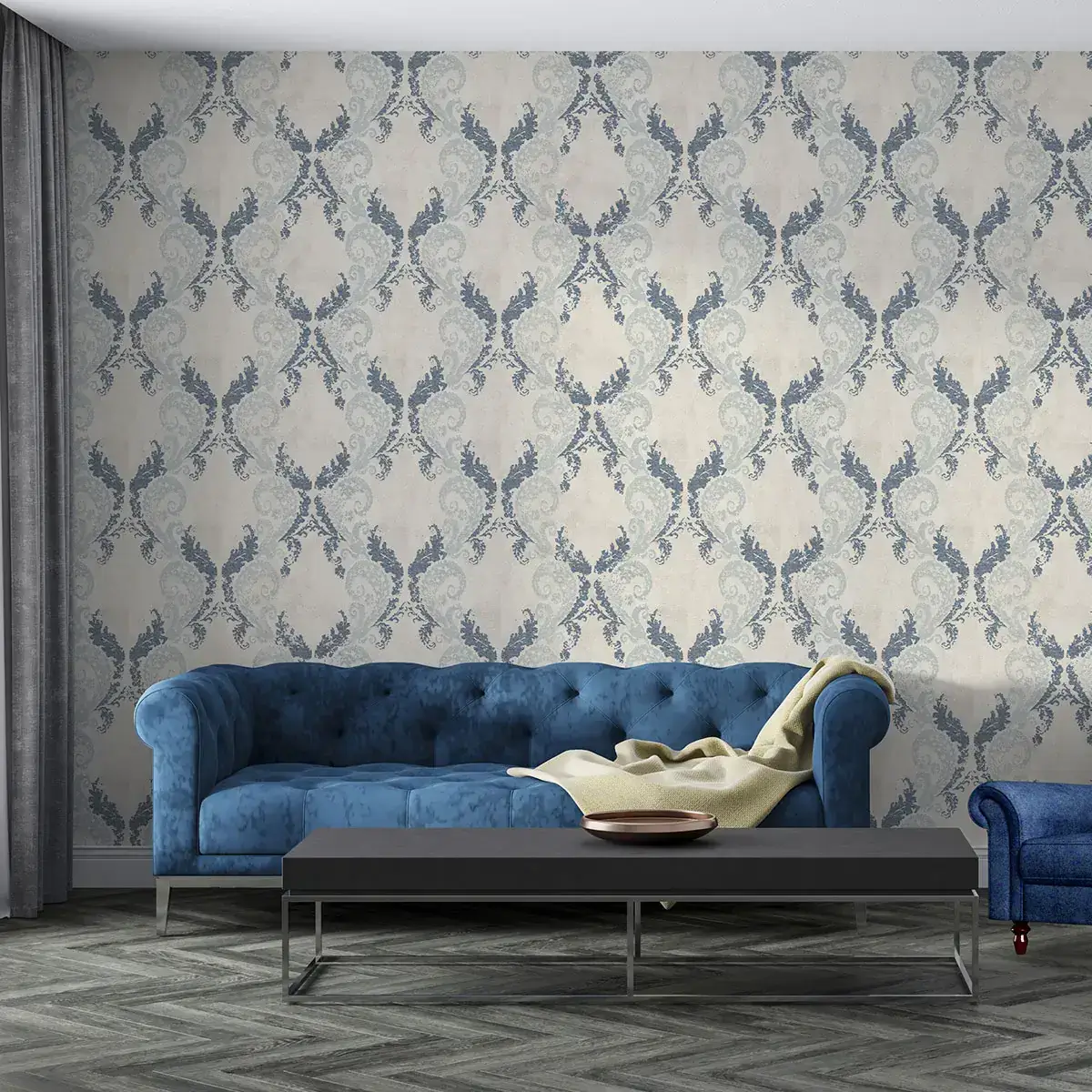رنگ : کاغذ دیواری خاکستری / کاغذ دیواری سورمه‌ای