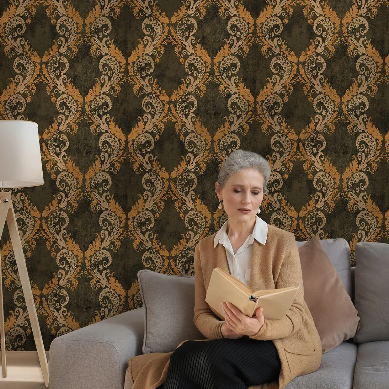 رنگ : کاغذ دیواری کرم / کاغذ دیواری قهوه‌ای / کاغذ دیواری طلایی