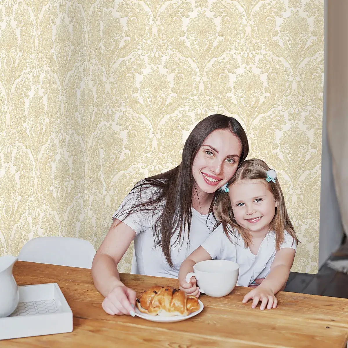 طرح داماسک این کاغذ دیواری با جزئیات زیبا و نقش و نگار کلاسیک، الهام‌بخش هنر و فرهنگ اروپایی است. این طراحی خاص به راحتی با دکوراسیون‌های سنتی و کلاسیک هم‌خوانی دارد و فضای خانه شما را به محیطی شیک و سلطنتی تبدیل می‌کند.