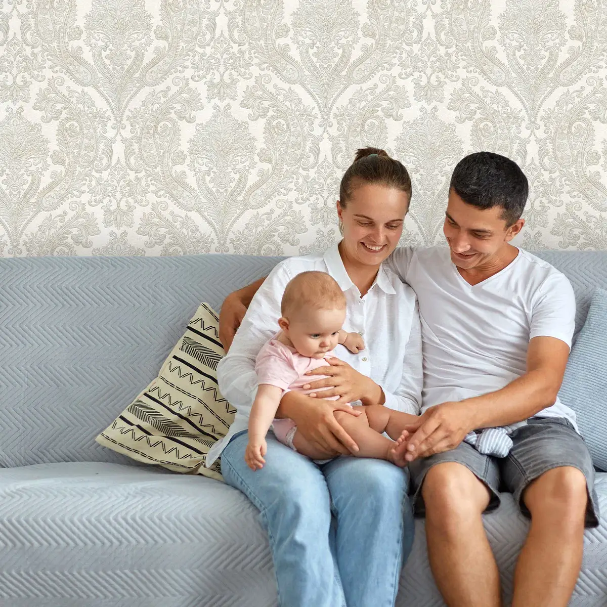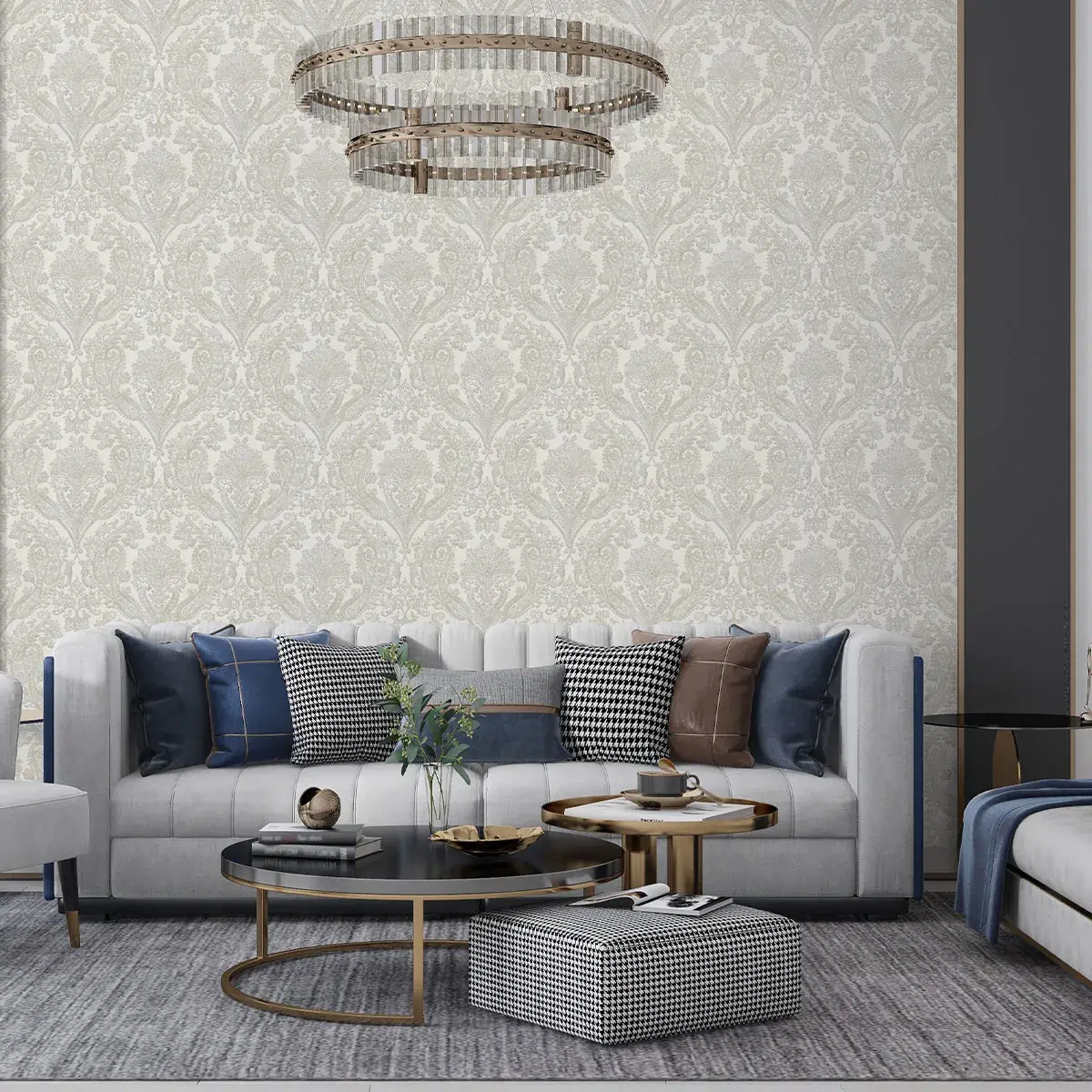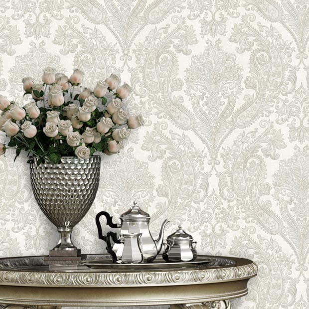 این کاغذ دیواری کلاسیک با طرحهای داماسک و رنگهای کرم و خاکستری، زیبایی و ظرافت خاصی به دکوراسیون داخلی میبخشد و با انواع سبکهای دکوراسیون کلاسیک و مدرن تطابق دارد.