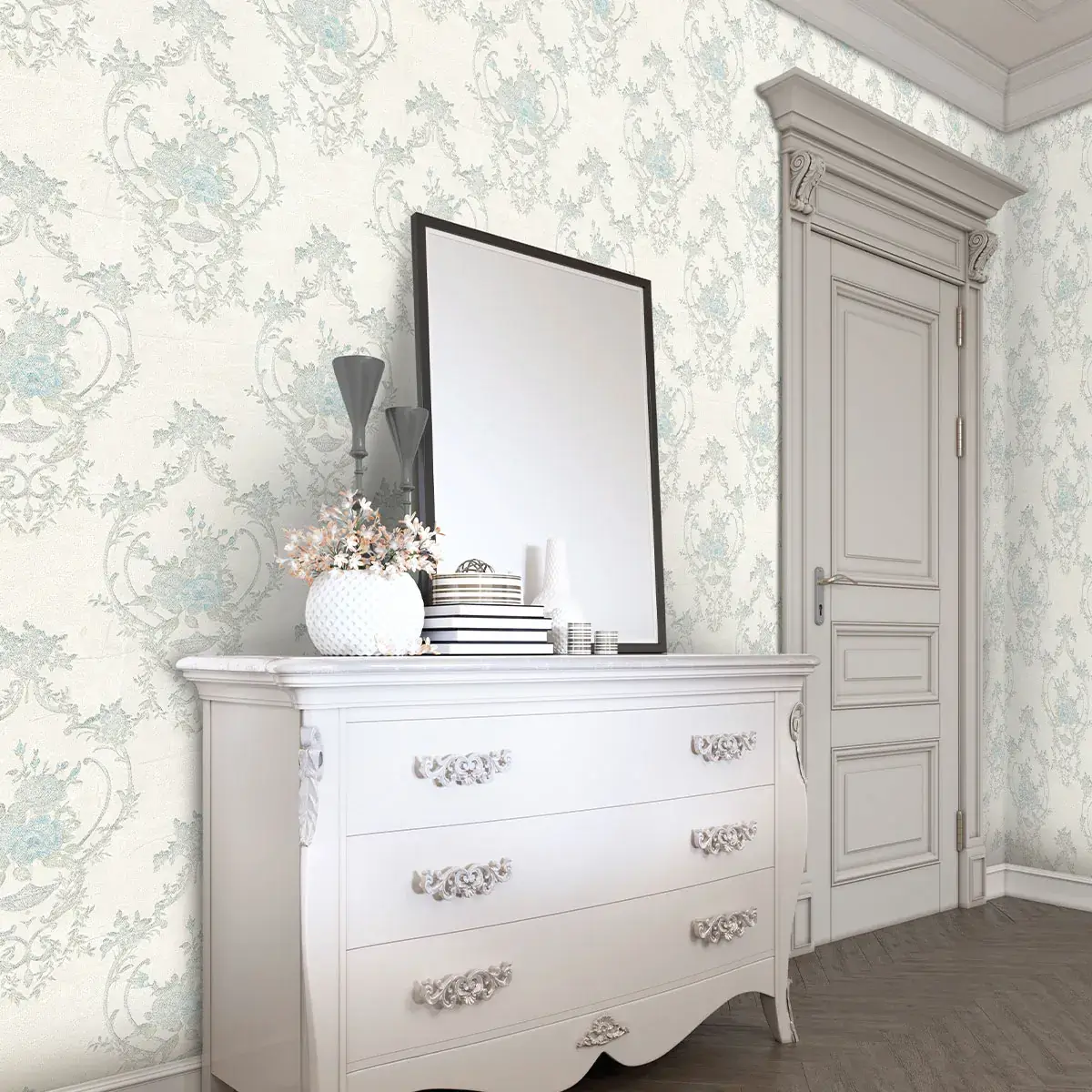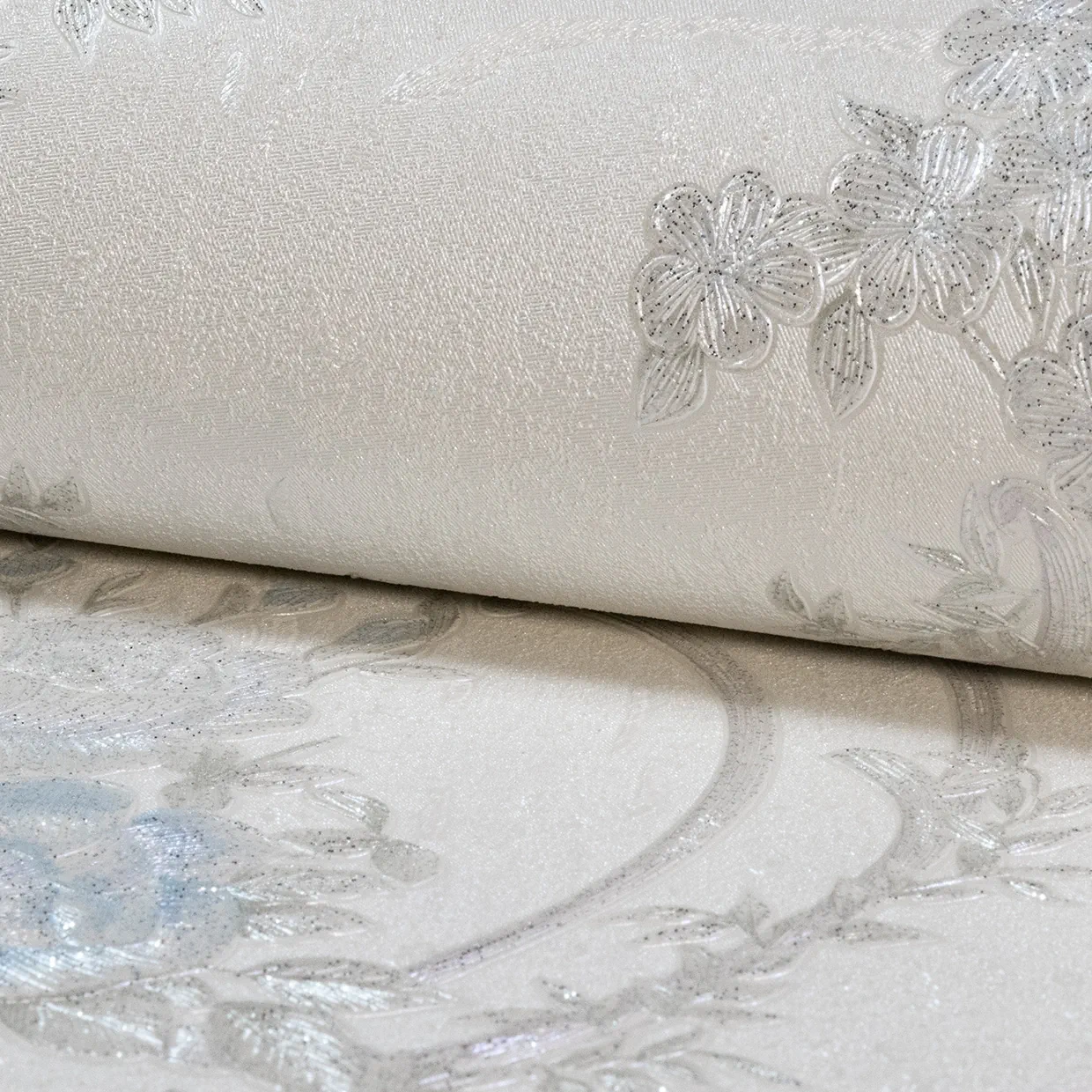 خانه کاغذ دیواری کاغذ دیواری رنگی کاغذ دیواری نقره‌ای کاغذ دیواری هیدروژن طرح داماسک گلدار کد 5010